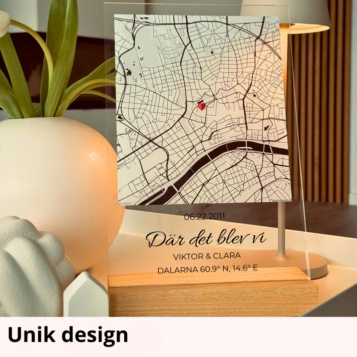 Med vår personliga akryltavla väcker du dina minnen till liv och skapar en unik, känslosam detalj i ditt hem. Perfekt för vardagsrum, sovrum eller arbetsplats – där den påminner om det som betyder mest.